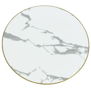 A Mesa de Jantar Redonda Majestic 70cm é uma peça que combina elegância, leveza e modernidade em um design atemporal. Seu visual sofisticado destaca o tampo em mármore sintético com bordas douradas, que contrasta harmoniosamente com a base tulipa branca, resultando em um móvel de presença marcante e estética minimalista.