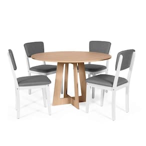 Mesa de Jantar Redonda Montreal com 4 Cadeiras Estofadas Madeira Maciça Ella