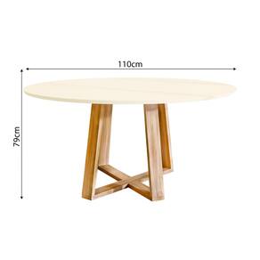 ESPECIFICAÇÕES TÉCNICA • Altura: 79 cm • Diâmetro: 110 cm • Base: Madeira maciça (eucalipto) • Tampo: MDF 18mm