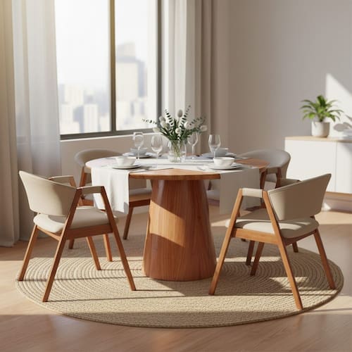 A Mesa de Jantar Redonda Liz é um móvel versátil que vai deixar o seu ambiente cheio de estilo e personalidade. Possui um design atual que pode ser utilizado em diversas composições e decorações. Pela sua versatilidade consegue ser utilizada em diferentes ambientes como sala de jantar, copa, cozinha, espaço gourmet ou onde você precisar. A estrutura da Mesa de Jantar Liz é produzida com materiais de excelente qualidade que garantem durabilidade e beleza ao seu ambiente. CARACTERÍSTICAS TÉCNICAS: - Base Cone Produzida em MDF com Revestimento Amadeirado - Tampo Produzido em MDF Laminado - Produto Entregue Semi Montado *Ideal para 4 Cadeiras *Cadeiras NÃO Inclusas INFORMAÇÕES TÉCNICAS: Altura: 78 cm Largura: 120 cm Profundidade: 120 cm Peso: 50 kg INFORMAÇÕES ADICIONAIS: - Conferir se o produto está de acordo com o que comprou, produto danificado não será aceito troca. - As imagens ambientadas são meramente ilustrativas e podem apresentar itens que não compõe o produto. As cores do produto podem variar de acordo com o monitor, a iluminação do ambiente ou sua percepção visual. - Limpeza deve ser feita com pano macio e seco ou levemente umedecido com água e sabão neutro. Não devem ser utilizados abrasivos como palha de aço e objetos cortantes; Garantia para defeitos de fabricação conforme Código de Defesa do Consumidor. Marca: Não Informado