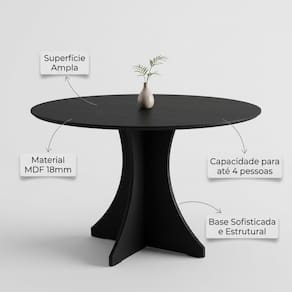 • Modelo: Elisa Base X • Cor: Preto • Altura: 79 cm • Diâmetro: 90 cm • Material: MDF • Tipo: Mesa de jantar