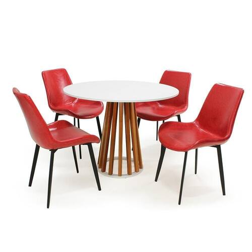 Conjunto Mesa de Jantar Redonda Talia Amadeirada 100cm com 4 Cadeiras Estofadas Chicago