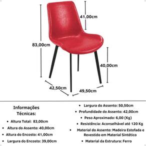> Material da Cadeira: Madeira Compensada Revestida em Material Sintético