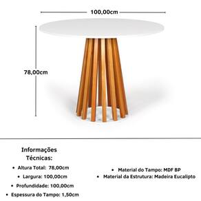 > Estrutura da Mesa: Madeira Maciça(Eucalipto) e MDF