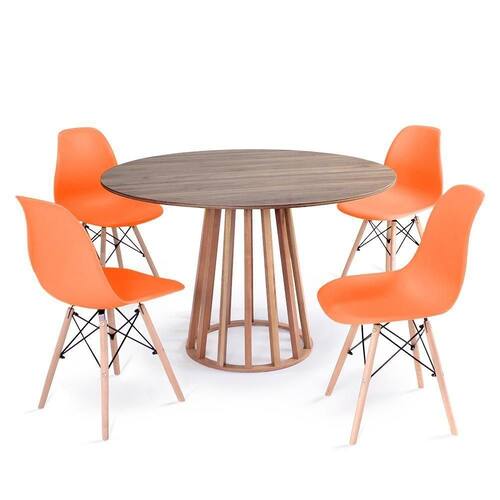 Mesa de Jantar Redonda Talia Amadeirada Natural 120cm com 4 Cadeiras Eames Eiffel