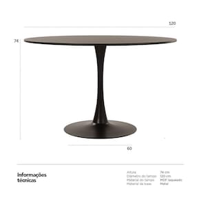 Diâmetro do tampo: 120 cm