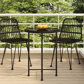 Mesa de jantar redonda vidaXL em preto - Construção em vidro temperado e aço com mesa de vime PE - Ideal para jardim, pátio, espaços internos e externos - Fácil de limpar e montar