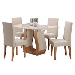 Uma sala de jantar só está completa com a presença de um bom espaço para que as confraternizações sejam totalmente aproveitadas. Com um design primoroso e sofisticado, a Sala Inovare reúne características ideais para tornar este ambiente um dos seus preferidos Medida da Mesa (A x L x P): A:79,4 x L:120 x P:80cm Peso da Mesa: 42.35 Mesa suporta até: 50 Acabamento da Cadeira/Banco: Pintura UV Acabamento da Mesa: Pintura UV Acompanha Manual de Instalação: Sim Ambiente Principal: Sala de Jantar Cadeira/Banco estofada: Encosto e Assento Estofados Cadeira/Banco suporta até: 90 Complexidade da Montagem: Média: pode ser montado por mais de uma pessoa e/ou necessite de maior conhecimento para montagem Cor: Mel/Off White/Bronze Cor do Produto: Mel/Off White/Bronze Cor Secundária: Bege De Canto (Canto Alemão): Não Enchimento do Assento: Espuma D-20 Enchimento do Encosto: Espuma D-12 Escala de Brilho: Semi-Brilho Espessura do Tampo: 25 Espessura do Vidro: mm Estrutura do Assento: MDP/ESPUMA Estrutura do Encosto: MDF/ESPUMA Formato do Tampo: Retangular Informações Complementares: Mesa De Jantar Retangular Com 4 Cadeiras Itens Inclusos: 1 Mesa, 4 Cadeiras, Kit Ferragem, Manual De Montagem Manual de Montagem e Instalação: https://product-hub-prd.madeiramadeira.com.br/906727/documents/f0e6ffc8-7f02-427e-95a0-c3729b9ae31a194823852817156141834428.pdf Material da Base da Mesa: MDF/MDP Material da Estrutura da Cadeira: MDF/MDP Material do Tampo: Vidro/MDP Material Principal: MDF/MDP Material Principal das Cadeiras/Bancos: MDF/MDP Medida da Cadeira/Banco (A x L x P): A:98,5 x L:41 x P:58,5CM Medida do Tampo (L x C x E): L:120 x P:80 x E:2,5cm Mesa Dobrável: Não Mesa Extensível: Não Montagem Flex: Não Necessita Montagem: Sim Origem do Produto: Nacional Peso da Cadeira/Banco: 7.1 Possui Apoio para Braços: Não Possui Apoio Para os Pés: Não Possui Prateleiras: Não Possui Rodízio: Não Possui Suporte Giratório: Não Possui Vidro: Sim Quantidade de Cadeiras: 4 Quantidade de Lugares: 04 Recomendações de Uso, Manutenção e Limpeza: Limpar com pano levemente umedecido com água Revestimento da Cadeira/Banco: Linho Sistema de Montagem: Parafusos, cavilhas Tipo de Assento: Fixo Tipo de Encosto: Fixo Vidro Temperado: Sim