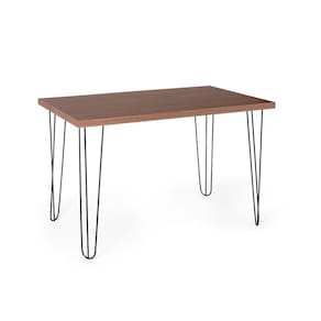 Mesa de Jantar Retangular 4 Lugares 120x75 Base de Ferro Hairpin - Straub Web - Marrom