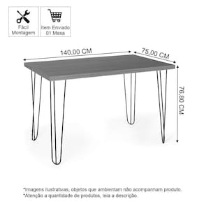 Mesa de Jantar Retangular 6 Lugares 140x75 Base de Ferro Hairpin