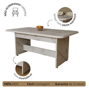 DIFERENCIAIS -Design moderno: acabamento marmorizado que traz sofisticação ao ambiente. -Estrutura resistente: produzida em MDF de qualidade, garantindo maior durabilidade. -Praticidade no dia a dia: mesa espaçosa para refeições, estudos ou encontros familiares. -Versatilidade de uso: ideal para cozinhas, salas de jantar e áreas gourmet.