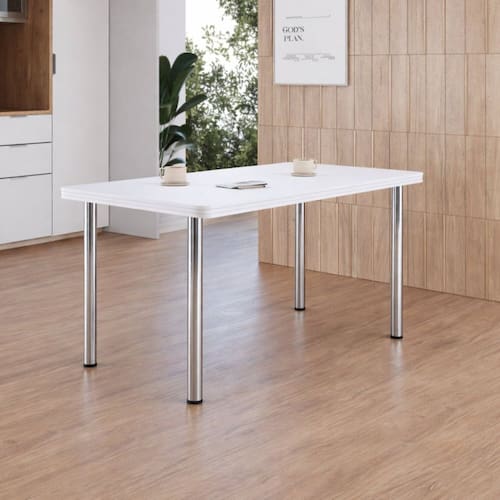 Apresentamos a Mesa 00.01.06 fabricada pela Tre Paroni Móveis, a escolha ideal para quem busca funcionalidade, resistência e design atemporal. Com 150 cm de largura, acomoda confortavelmente até 6 pessoas, sendo perfeita para salas de jantar ou ambientes integrados. Possui base com 4 pés em metal cromado, que garantem estabilidade e um visual moderno, além do seu tampo feito em MDP de 45cm com acabamento em Fórmica e borda em PVC, oferecendo maior durabilidade e acabamento de qualidade. Acabamento: BP Melamínico Acabamento da Base: Cromado Acabamento do Tampo: BP Melamínico Ambiente Principal: Sala de Jantar Atóxico: Sim codigo_ean: 7900288321350 Complexidade da Montagem: Baixa: pode ser montado por uma pessoa sozinha Cor: Branco Cor do Produto: Branco Design da Base: 4 Pés Dobrável: Não Escala de Brilho: Brilhante Espessura do Tampo: 45 mm Extensível: Não Informações Complementares: Mesa com tampo em MDP e acabamento em Fórmica. Itens Inclusos: 1 Mesa, Kit Ferragem e Manual de Montagem Linha ou Coleção: Mesas Manual de Montagem e Instalação: https://product-hub-prd.madeiramadeira.com.br/936056492/documents/99d79e72-b746-4a1b-beb0-4d3556cf6ebe3374227492517698727799622.pdf Marca: TRE PARONI Material da Base: Metal Material do Tampo: MDP Material Principal: MDP Medida da Mesa (A x L x P): 78cm x 80cm x 150cm Medida do Tampo (L x C x E): 80cm x 150cm x 4,5cm Necessita Montagem: Sim Origem do Produto: Nacional Peso: 22 kg Possui Portas: Não Possui prateleira: Não Possui Rodízio: Não Possui Suporte Giratório: Não Possui Vidro: Não Recomendações de Uso, Manutenção e Limpeza: Deve ser feita com pano macio e seco ou levemente umedecido com água e sabão neutro. Não devem ser utilizados abrasivos como palha de aço e objetos cortantes. Sistema de Montagem: Parafusos Suporta Até (kg): 25 kg