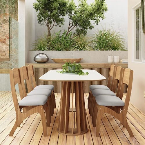 Características: Estrutura 100% MDF Acabamento em Pintura UV Cantos Arredondados Tampo Chanfrado Pés Ripados Sapatas Plásticas Acomoda até 6 Lugares NÃO ACOMPANHA CADEIRAS