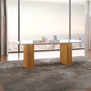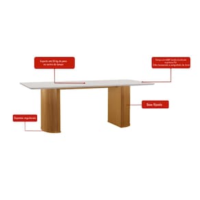 Produzida com materiais de alta qualidade, em MDP, MDF e vidro, ela oferece resistência, durabilidade e um visual moderno. O tampo em MDF de 32 mm possui acabamento em laca e é complementado por um vidro temperado e serigrafado de 4 mm, que além de elegante, é fácil de limpar e resistente a manchas.