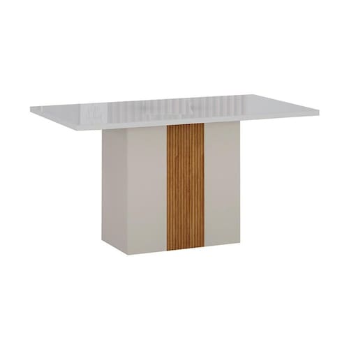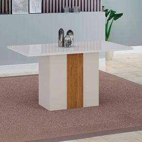 Mesa de Jantar Retangular com Tampo de Vidro Doha 100% MDF Off White e Amadeirado 120 cm