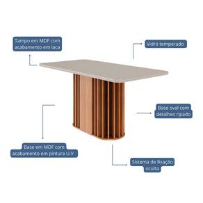 Mesa de Jantar Retangular com Tampo de Vidro Julieta Off White e Cinamomo 160 cm - Marrom