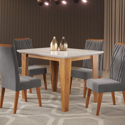 A mesa de jantar retangular Divine, com seu tampo chanfrado e cantos arredondados, exibe um requinte que encanta a todos. O vidro que a reveste reflete a luz suave do ambiente, criando um jogo de brilhos que atrai o olhar. Ao redor, quatro cadeiras Vegas de madeira oferecem um toque moderno e aconchegante, perfeito para longas conversas. Cada refeição se transforma em uma ocasião especial, onde risadas e histórias são compartilhadas. A combinação do vidro com a madeira traz equilíbrio, unindo modernidade e tradição. O aroma da comida caseira preenche o ar, despertando o apetite e a alegria. A mesa se torna o cenário de momentos inesquecíveis, onde uma família se reúne em torno do amor. Em cada canto arredondado, há um convite à convivência e à intimidação.