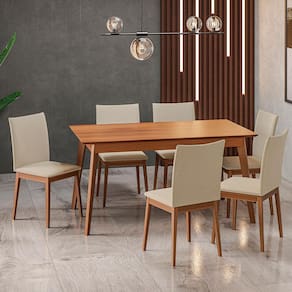 O conjunto sala de jantar Dobuê Topázio é o conjunto perfeito para a sua casa! Feito em MDF e madeira eucalipto, ele é bastante resistente e durável, perfeito para o dia a dia e os momentos especiais com as suas visitas.