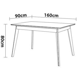 De formato retangular, a mesa conta com design exclusivo, tampo de MDF chanfrado com verniz vítreo de alto brilho e 25mm de espessura, pés fosco em madeira, acabamento envernizado e resistentes sapatas plásticas.