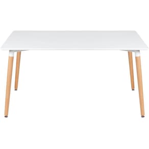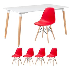 MDF laqueado, polipropileno, madeira e açoMesa de jantar retangular Eames 80 x 140 cm + 4 cadeiras Eiffel DSW Mesa branco com cadeiras vermelho -