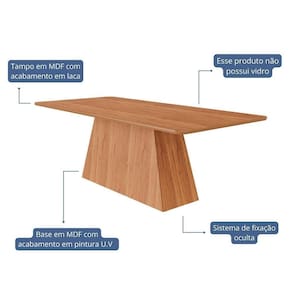 Mesa De Jantar Retangular Helena 210x100 Cinamomo Com Tampo Em Mdf - Cimol Móveis Cinamomo Mesa de Jantar Retangular Helena 210x100 com Tampo em MDF - Cimol Móveis A Mesa de Jantar Helena 210x100 é a escolha ideal para quem busca sofisticação e espaço para reunir amigos e familiares. Com estrutura em MDF e pintura UV, seu tampo de 25mm apresenta cantos arredondados e bordas chanfradas com acabamento em laca, garantindo um visual refinado. A base triangular em MDF possui fixação oculta, sem parafusos aparentes, proporcionando um design limpo e elegante. Com capacidade para até 8 lugares, é perfeita para compor ambientes amplos com requinte e funcionalidade. ESPECIFICAÇÕES: - Estrutura em MDF - Pintura UV - Tampo em MDF 25mm com cantos arredondados e bordas chanfradas com acabamento laca - Base triangular em MDF com fixação oculta (sem parafusos aparentes) - Acomoda 8 lugares