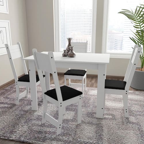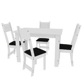 O conjunto de Mesa de Jantar com 4 Cadeiras Indekes Salvia une o belo, prático e a durabilidade que a sua cozinha merece. Onde temos a mesa ideal para cozinha, com produção mista de MDP e MDF, e a cadeira 100% MDF com assento revestido de courino. A estrutura, ambas da mesa e cadeira são em pintura ultra-violeta. A mesa vem acompanhada por tampo em MDP de 15mm, e o seu formato retangular com desenho em quatro pés, permite atender com perfeição e elegância as suas necessidades.