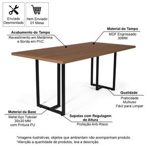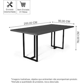 Mesa de Jantar Retangular Industrial 6 Lugares 200x90cm Atos