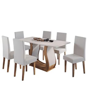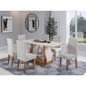 Mesas são indispensáveis para o funcionamento da casa e é no cômodo de confraternização que elas ganham protagonismo. Composto por peças de muito charme, o Conjunto Royale e Venus torna o uso desse móvel importante com 6 cadeiras para garantir uma usabilidade plena para o seu dia a dia Medida da Mesa (A x L x P): A:79,4 x L:160 x P:80cm Peso da Mesa: 41,8 kg Mesa suporta até: 50.0000 Acabamento da Cadeira/Banco: Pintura UV Acabamento da Mesa: Pintura UV Acompanha Manual de Instalação: Sim Ambiente Principal: Sala de Jantar Cadeira/Banco Estofada: Encosto e Assento Estofados Cadeira/Banco estofada: Encosto e Assento Estofados Cadeira/Banco suporta até: 90.0000 codigo_ean: 7909903502426 Complexidade da Montagem: Média: pode ser montado por mais de uma pessoa e/ou necessite de maior conhecimento para montagem Cor: Imbuia/Blonde/Marfim Cor do Produto: Imbuia/Blonde/Marfim De Canto (Canto Alemão): Não Enchimento do Assento: Espuma D-20 Escala de Brilho: Semi-Brilho Espessura do Tampo: 25 mm Estrutura do Assento: MDP/Espuma Formato do Tampo: Retangular Informações Complementares: Sala de Jantar 6 lugares Itens Inclusos: 1 Mesa, 6 Cadeiras, Kit Ferragem, Manual de Montagem Manual de Montagem e Instalação: https://product-hub-prd.madeiramadeira.com.br/882120/documents/edc382d9-8923-41ee-a978-d0b5ba38f36b85061baseveronacomcadvenus.pdf Material da Base da Mesa: MDF/MDP Material da Estrutura da Cadeira: MDF/MDP Material do Tampo: MDP Material Principal: MDF/MDP Material Principal das Cadeiras/Bancos: MDF/MDP Medida da Cadeira/Banco (A x L x P): A:98,5 x L:41 x P:58,5cm Medida do Tampo (L x C x E): L:160 x P:80 x E:2,5cm Mesa Extensível: Não Necessita Montagem: Sim Origem do Produto: Nacional Peso da Cadeira/Banco: 7,1 kg Possui Apoio Para os Pés: Não Possui Vidro: Não Quantidade de Cadeiras: 6 Quantidade de Lugares: 06 Recomendações de Uso, Manutenção e Limpeza: Limpar com pano levemente umedecido com água Revestimento da Cadeira/Banco: Veludo Sistema de Montagem: Parafusos, cavilhas
