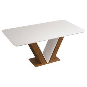 Mesa de Jantar Rute Tampo Chanfrado Curvo Freijó Off White - Dj Móveis