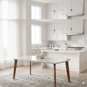 A Mesa de Jantar Jade da RV Móveis é um móvel requintado. Fabricado em alta qualidade com tampo de vidro e pés palito de madeira maciça, garante charme e requinte a sua sala de estar.
