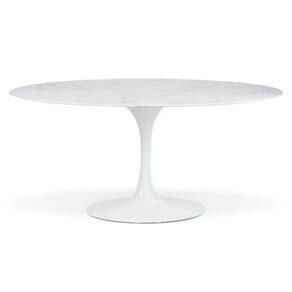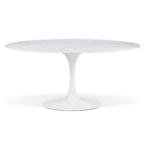 Mesa de jantar Saarinen Oval, Tampo 120x80 cm em Mármore, com contra tampo em MDF 25 mm, Base em alumínio fundido com pintura automotiva PU.