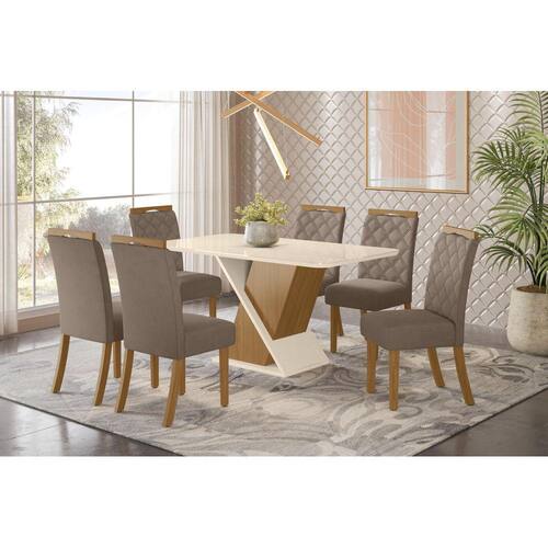 Mesa de Jantar 06 Lugares Solus 1.600 mm Tampo retangular em MDF 25 mm com sobreposição de vidro 4 mm, que garante mais resistência e durabilidade à peça. Tampo canto arredondado com vidro. Cadeira Bella: Densidade da espuma do Assento: D18. Densidade da espuma do Encosto: D15. Medidas; Mesa: A: 800 x L: 1600 x P: 900 mm Cadeira: A: 1005 x L: 430 x P: 560 mm Grantia: 90 dias. Recomendação de limpeza: Usa pano levemente umedecido com água, seguido por pano seco. Evitar exposição ao sol, para aumentar a durabilidade da cor do tecido. Não usar escova e/ou produtos abrasivos. Montagem: Montagem, desmontagem e outras instalações serão de responsabilidade do cliente. Não nos responsabilizamos, no ato da entrega, por subir escadas/elevadores ou pelo transporte por guincho em apartamentos. Eventuais despesas são de responsabilidade do comprador; Observações importantes: A tonalidade da cor do produto pode variar de acordo com a sua tela, a iluminação do ambiente ou sua percepção visual Lembrando que são fotos ilustrativas tratadas em estúdios podendo haver pequena diferença nas cores A montagem será de responsabilidade do comprador; Não nos responsabilizamos, no ato da entrega, por subir escadas/elevadores ou transporte por guincho em apartamentos. Eventuais despesas são de responsabilidade do comprador; Confira as dimensões deste produto e certifique-se de que passará normalmente por supostos elevadores, portas, escadas e/ou corredores de sua residência; Para mais informações, acesse nossa Central de Atendimento. Marca: LM DECOR