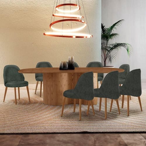 Mesa De Jantar Suiça 220cm Madeira Tampo Laminado Orgânico Jade / Imbuia Nat.