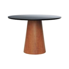 Mesa De Jantar Tampo Em Vidro Base Cone Laminado Cinamomo Amêndoa Tampo 150 Mdf Preto/vidro Preto
