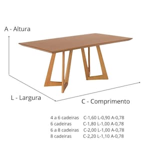 Mesa Tampo Madeira Tauari 1,80X1,00 1,80X1,00 - Acomoda até 6 lugares com conforto.