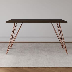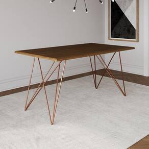 Mesa De Jantar Trama Base Cobre Com Tampo Amêndoa 140 X 80 - Asturias - Cor: Marrom Mesa De Jantar Trama Base Cobre Com Tampo Amêndoa 140 X 80 - New GreenA sua cozinha ou sala de jantar só estará completa com essa maravilhosa mesa para realizar as grandes as refeições em família. E se você busca um móvel com design contemporâneo, acompanhado de muita qualidade material e combinação de cores clássica, o modelo Trama é para você!De tampo retangular e estrutura em ferro, essa mesa acomoda os seus convidados enquanto deixa o momento mais intimista. Mas não é só a sua rotina que ganha uma bela aliada: ela também complementa a decoração com sofisticação, além de ser harmonizável com cadeiras da mesma cor ou coloridas, seja para garantir um visual monocromático ou voltado para algo arrojado. Ah, a peça não acompanha cadeiras e você deve adquiri-las separadamente para deixar o uso completo.Informações importantes:- Os objetos que ambientam as fotos não acompanham o produto.- Verifique as dimensões do produto e certifique-se que o percurso que ele fará até o local de uso permite sua passagem.- Favor verificar se os Pés/Base estão dentro do forro inferior do produto.- Fique atento, nossas cores podem sofrer alterações dependendo do seu monitor.Instruções/Cuidados Limpar com Pano Levemente UmedecidoConteúdo da Embalagem 1 Mesa (Cadeiras não acompanham o produto) - Entregue em: 2 VolumesEspecificações:Modelo: TramaFormato: RetangularTampo: Madeira MaciçaCor do Tampo: AmêndoaPés/Base: Estrutura em Ferro // Tipo: Estrela // FixoCor dos Pés/Base: CobreDimensões: Altura: 76 cm // Largura: 140 cm // Profundidade: 80 cmMesa de Jantar Trama Base Cobre com Tampo AmÃndoa 140 X 80 - Asturias