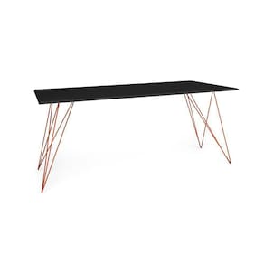 Mesa De Jantar Trama Base Cobre Com Tampo Preto 140 X 80 - New Green - Cor: Preto