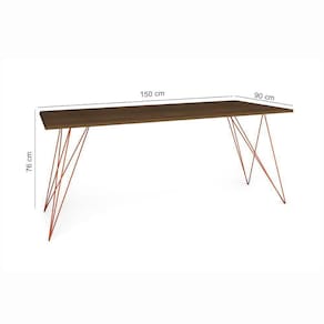 Mesa De Jantar Trama Plus Base Cobre Com Tampo Amêndoa 150 X 90 - New Green - Cor: Marrom