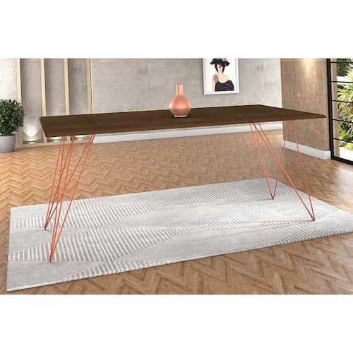 Mesa De Jantar Trama Plus Base Cobre Com Tampo Amêndoa 150 X 90 - New Green A sua cozinha ou sala de jantar só estará completa com essa maravilhosa mesa para realizar as grandes as refeições em família. E se você busca um móvel com design contemporâneo, a