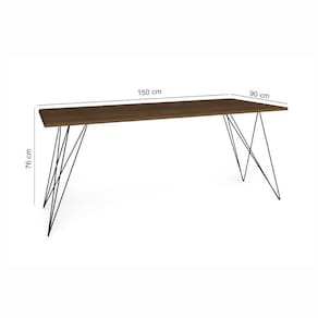Mesa De Jantar Trama Plus Base Preto Com Tampo Amêndoa 150 X 90 - New GreenA sua cozinha ou sala de jantar só estará completa com essa maravilhosa mesa para realizar as grandes as refeições em família. E se você busca um móvel com design contemporâneo, acompanhado de muita qualidade material e combinação de cores clássica, o modelo Trama Plus é para você!De tampo retangular e estrutura em ferro, essa mesa acomoda os seus convidados enquanto deixa o momento mais intimista. Mas não é só a sua rotina que ganha uma bela aliada: ela também complementa a decoração com sofisticação, além de ser harmonizável com cadeiras da mesma cor ou coloridas, seja para garantir um visual monocromático ou voltado para algo arrojado. Ah, a peça não acompanha cadeiras e você deve adquiri-las separadamente para deixar o uso completo.Informações importantes:- Os objetos que ambientam as fotos não acompanham o produto.- Verifique as dimensões do produto e certifique-se que o percurso que ele fará até o local de uso permite sua passagem.- Favor verificar se os Pés/Base estão dentro do forro inferior do produto.- Fique atento, nossas cores podem sofrer alterações dependendo do seu monitor.Instruções/Cuidados Limpar com Pano Levemente UmedecidoConteúdo da Embalagem 1 Mesa (Cadeiras não acompanham o produto) - Entregue em: 2 VolumesEspecificações:Modelo: Trama Plus Formato: RetangularTampo: Madeira MaciçaCor do Tampo: AmêndoaPés/Base: Estrutura em Ferro // Tipo: Estrela // FixoCor dos Pés/Base: PretoDimensões: Altura: 76 cm // Largura: 150 cm // Profundidade: 90 cmMesa de Jantar Trama Plus Base Preto com Tampo AmÃndoa 150 X 90 - New Green