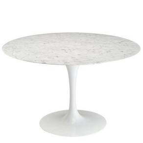 Mesa de Jantar Saarinen Redonda, Tampo 100 cm em GRANITO MÁRMORE CARRARA, com contra tampo em MDF, Base em alumínio fundido com pintura automotiva PU.