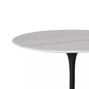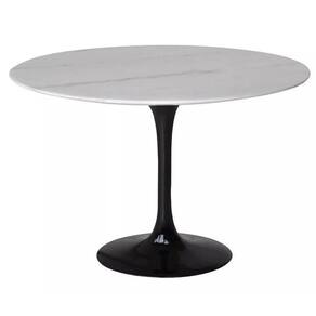 Mesa de Jantar Saarinen Redonda, Tampo 120 cm em GRANITO MÁRMORE BRANCO EXTRA, com contra tampo em MDF, Base em alumínio fundido com pintura automotiva PU.