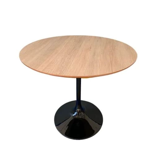 Mesa de Jantar Saarinen Redonda, Tampo 130 cm em MDF Laminado em Madeira, com contra tampo em MDF, Base em alumínio fundido com pintura automotiva PU.