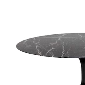 Mesa de Jantar Saarinen Oval, Tampo 137x90 cm em Mármore Nero, com contra tampo em MDF, Base em alumínio fundido com pintura automotiva PU.