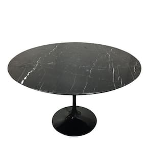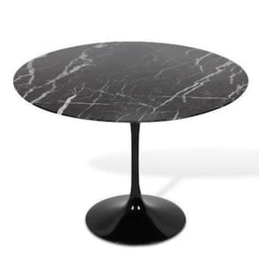 Mesa de Jantar Saarinen Redonda, Tampo 160 cm em Mármore Nero, com contra tampo em MDF, Base em alumínio fundido com pintura automotiva PU.