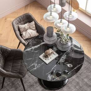 A mesa de mármore Nero é uma peça de mobiliário distinta e elegante, conhecida por sua aparência sofisticada e durabilidade. Feita a partir do mármore Nero Marquina, originário da Espanha, essa mesa apresenta uma base negra profunda com veios brancos contrastantes, criando um visual dramático e contemporâneo.