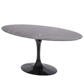Mesa de Jantar Saarinen Oval, Tampo 160x90 cm em Mármore Nero, com contra tampo em MDF, Base em alumínio fundido com pintura automotiva PU.