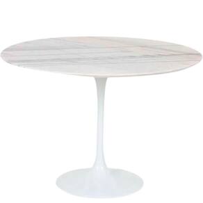 Mesa de Jantar Saarinen Redonda, Tampo 90 cm em GRANITO MÁRMORE BRANCO EXTRA, com contra tampo em MDF, Base em alumínio fundido com pintura automotiva PU.