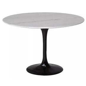 Mesa de Jantar Saarinen Redonda, Tampo 90 cm em GRANITO MÁRMORE BRANCO EXTRA, com contra tampo em MDF, Base em alumínio fundido com pintura automotiva PU.