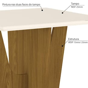 Características - Nature/Off White - Estrutura: MDP 15mm/ 25mm - Tampo: MDF 25mm - Acabamento: Lacaborda/Pintura UV Texturizada - Pintura nas duas faces do tampo - Vidro 4mm - Sapatas de Plástico - Peso suportado: 30 kg - Produto entregue desmontado - Marca: Henn